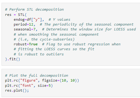 Fortunately, thanks to statsmodels library, STL is very easy to implement. In Figure 4, I have brought a code snippet which describes how STL can be used in practice.